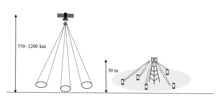 圖 3 衛(wèi)星波束與蜂窩基站覆蓋方式對比